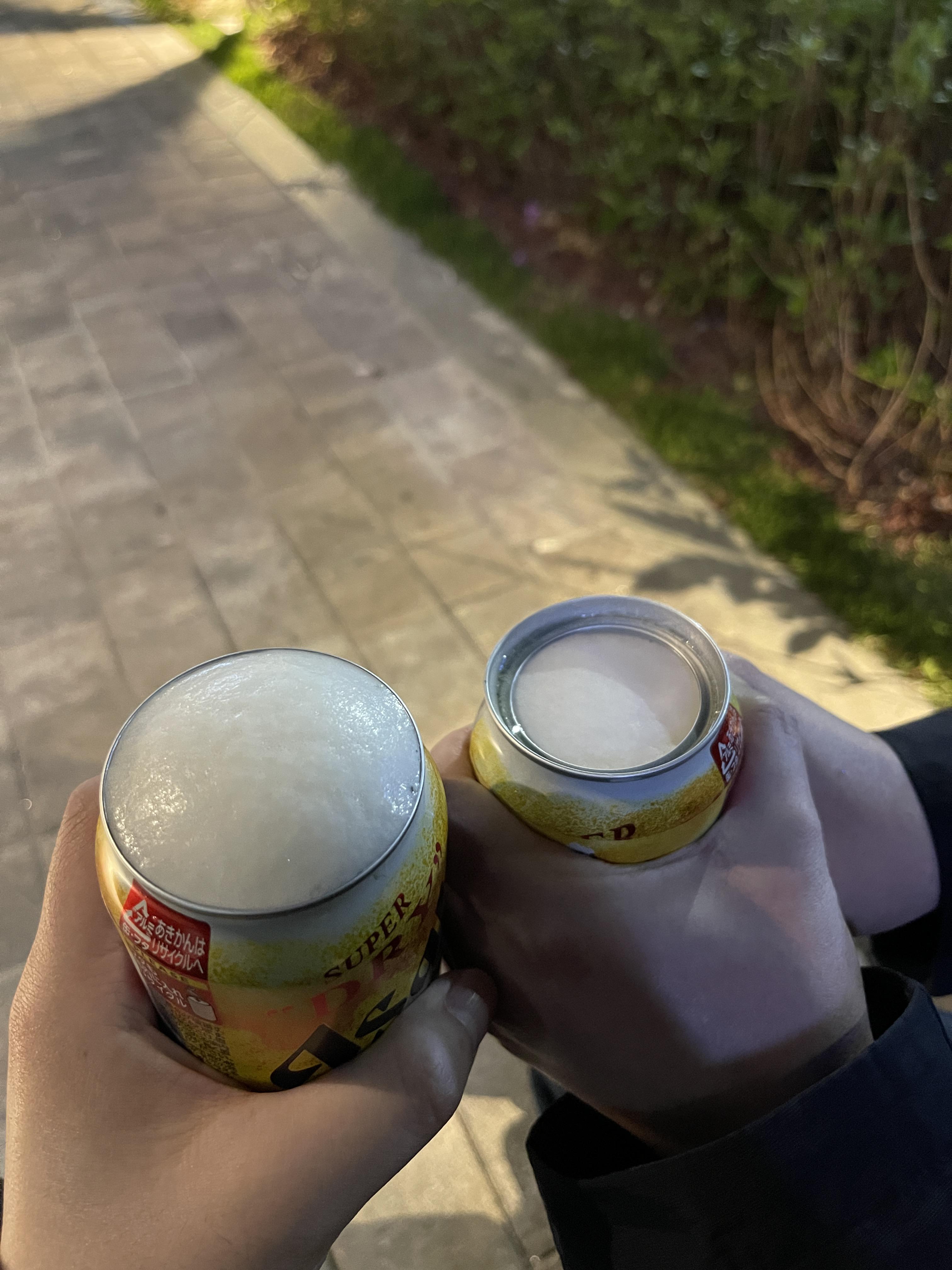 어쨌든 날씨도 좋고 오랜만에 밖에서 노상을 깠습니다. 하지만 안타깝게도 이 맥주캔은 관리가 까다롭습니다. 4에서 6도에서 6시간 동안 냉장보관을 해야 맛있다는 겁니다. 제가 이 때 먹었던 맥주는 유난히도 거품이 많이 일어났습니다. 일단 캔맥주 까는 방식도 신기하기도 했고 거품이 이렇게 일어난다는 것도 상당히 센세이셔날 했습니다. 하지만 맥주 온도 탓인지 라거보다는 에일처럼 느껴졌습니다. 그래서 이 돈 주고 이거 먹는 것은 약간 가성비 측면에서는 떨어진다고 느꼈습니다.